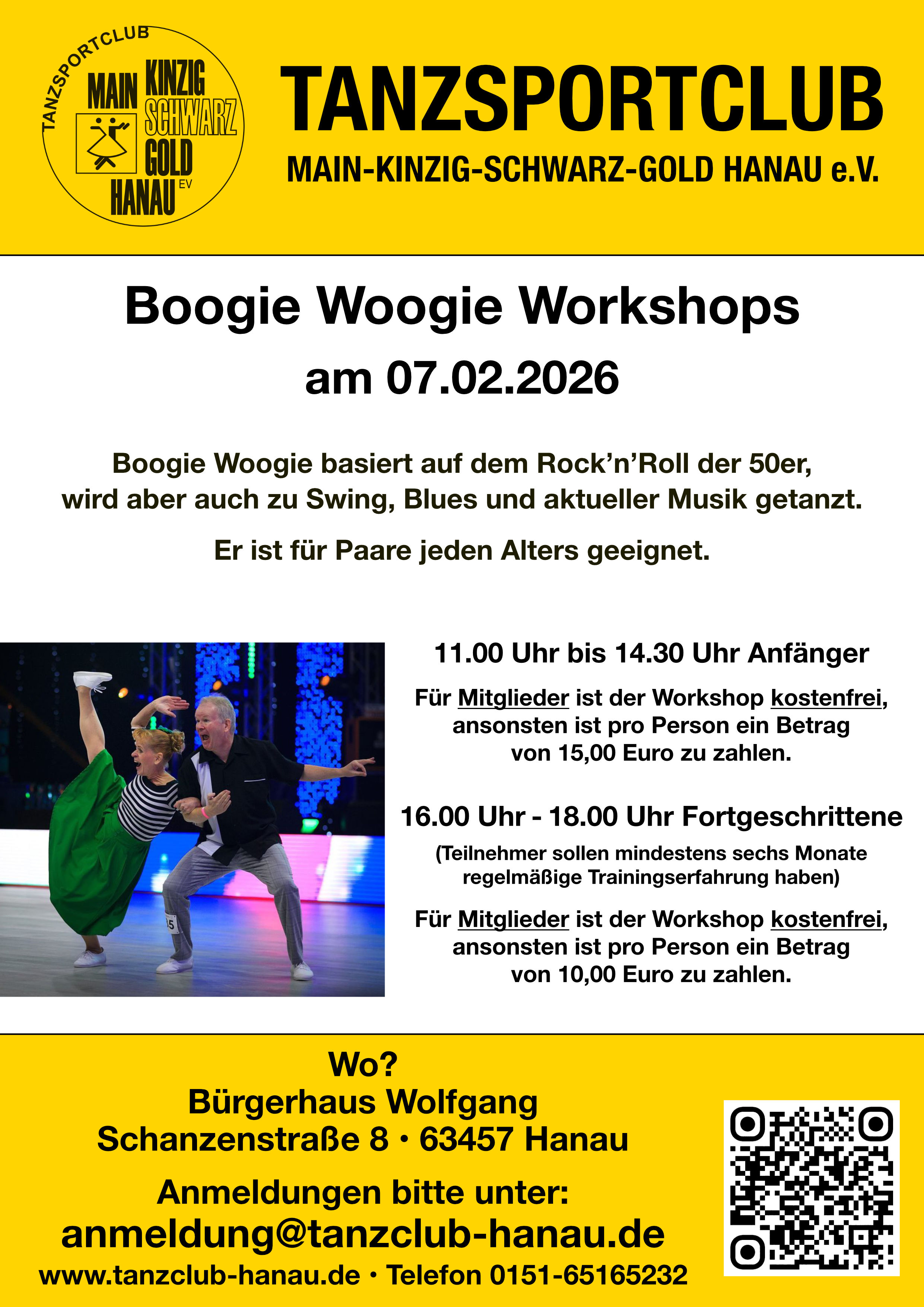 Anmeldungen bitte mit Hinweis auf eine vorhandene Mitgliedschaft unter anmeldung@tanzclub-hanau.de.